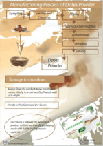 - 100% de dattes dénoyautées, déshydratées et broyées en poudre fine.